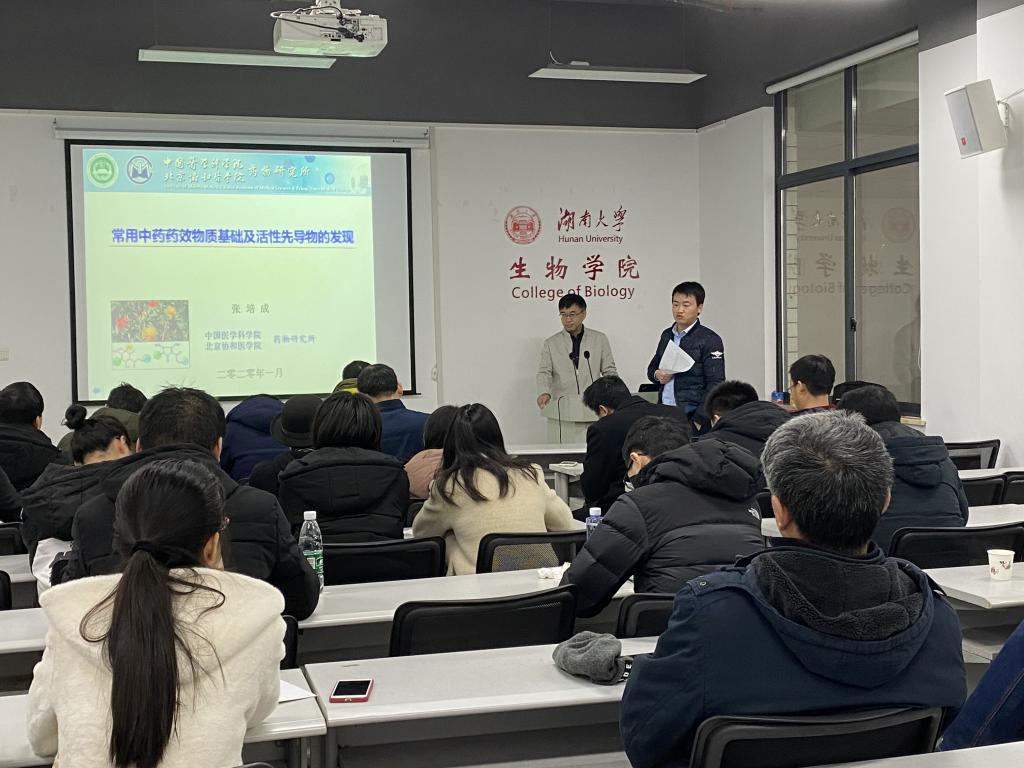 在报告中,张培成教授首先介绍了中草药中新型天然活性物质的发现及鉴定;然后以红花、虎杖等著名中草药为例,详细阐述了主要功能活性物质中结构解析、修饰及合成,并创立了系列国家标准;最后就天然活性产物的在抗肿瘤、心脑血管疾病等方面的应用及其机制展开了深入的探究。张教授的报告内容丰富详实,讲述深入浅出。在讨论环节中,老师和同学们对报告内容进行了热情的讨论,从中受益匪浅,实现了学术交流的目的。