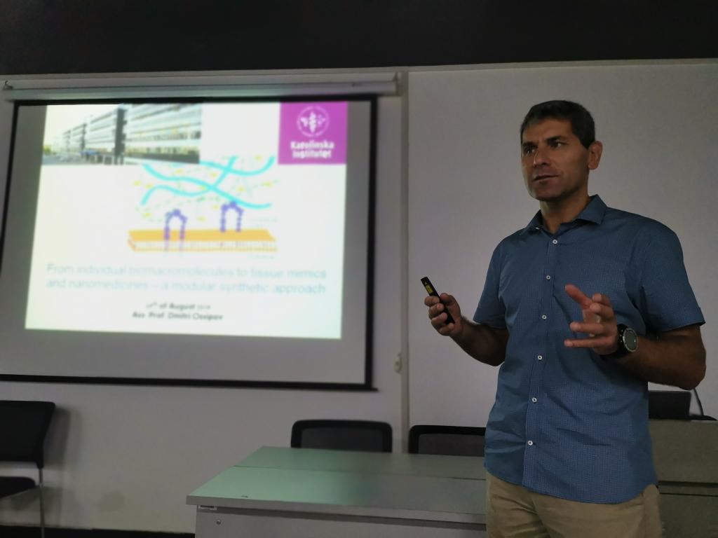 进行学术交流,并以《From individual biomacromolecules to nanomedicines and tissue mimics-a modular synthetic approach》为题进行了一场精彩的学术讲座。本次讲座由施李杨副教授主持,众多师生参与了此次学术交流。