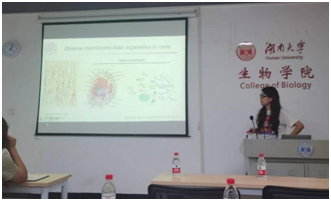 首先,吝老师对相分离做了基础的介绍,例如相分离的发现、形成原因和作用,以及在病理作用下的相分离的功能。接着,吝老师为在场的师生分享了课题组的最新发表在cell的工作。文章揭示了细胞中利用相分离协调蛋白质翻译的精细时空调控,从而维持昼夜节律周期的分子机制。