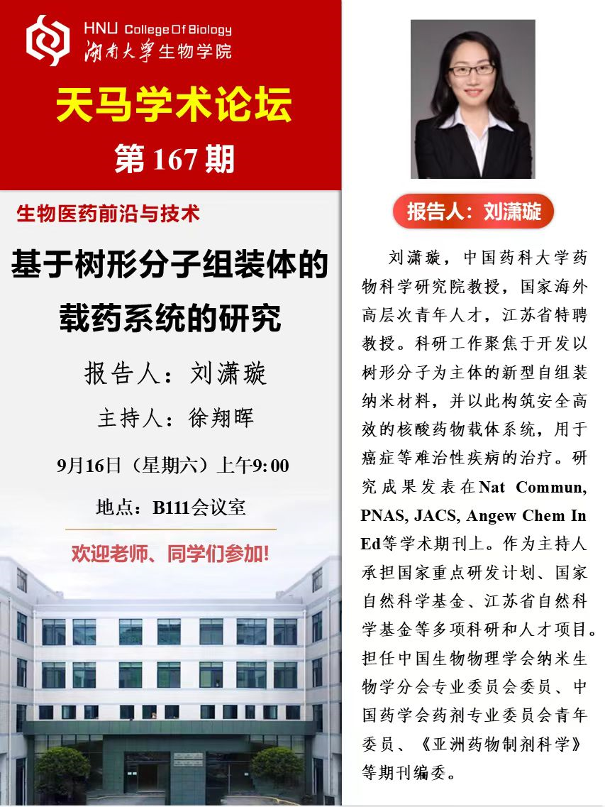 天马学术论坛 第167期-中国药科大学 刘潇璇教授