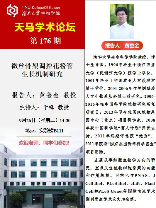 天马学术论坛 第176期-清华大学 黄善金教授