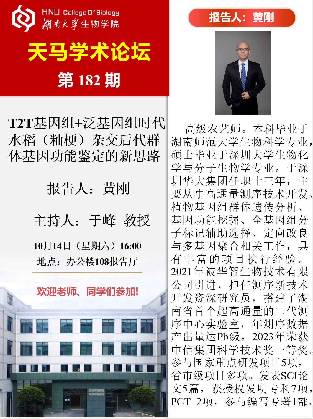 天马学术论坛 第182期-华智生物技术有限公司 黄刚