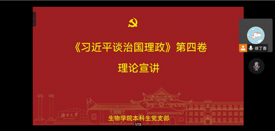 本科生党支部全体成员于线上举行了理论宣讲活动。本次活动由徐丁香主持,支部书记冉晓芬与全体学生党员参与。