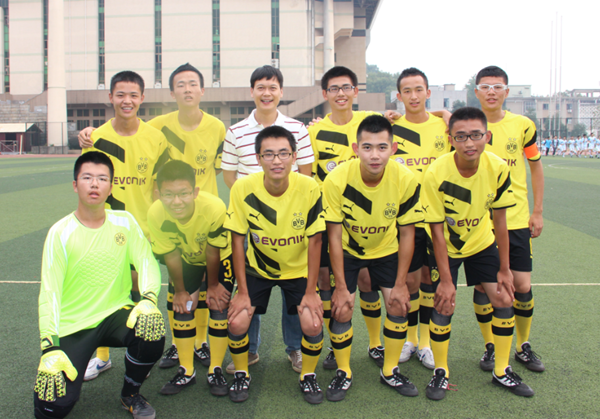 在新生杯中首次进入决赛,来自全院各年级的啦啦队在看台上为足球队员加油!