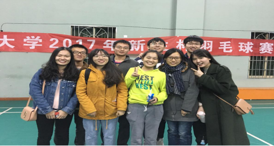 2017年新生杯羽毛球赛在南校区体育馆顺利举行。苏伊凡、李春曜、吴婕,任龙鑫、刘成、倪康六位同学代表 黄色漫画