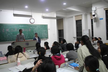 随后,两名干事重点说明了志愿者们应该注意的一些事项。首先提到了考勤签到制度,然后便是服务老人的过程中的一些细节问题。根据以往去敬老院服务的同学的总结,如何让老人与志愿者敞开心扉地交流是一个难题。因此需要志愿者随机应变,在和不同的老人进行交流时采取不同的方式。比如陪喜欢下棋的老人下会儿棋、陪散步的老人走动走动,如果老人不舒服,可以在老人同意的情况下为老人按按摩……最后总结出:热情与耐心是服务的关键。