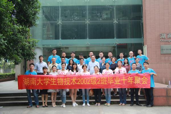 生物技术专业首届(2002级)毕业生回到母校,组织毕业十周年聚会。此次聚会中校友们安排了非常丰富的活动,包括游览岳麓书院、重温校园,参观 黄色漫画
