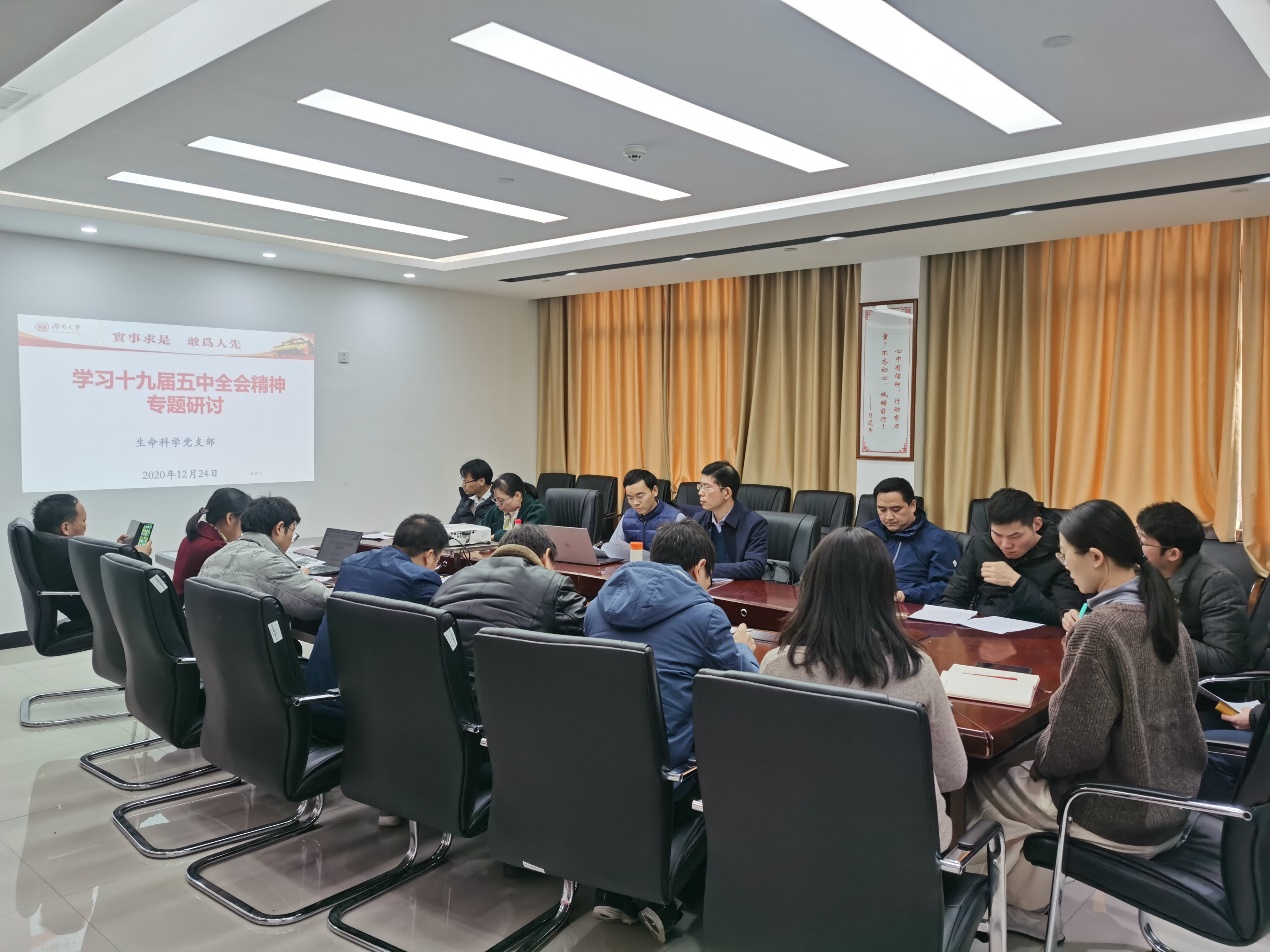 生命科学党支部召开十九届五中全会精神专题研讨,系统深入学习党的十九届五中全会精神,同时围绕学院学科建设展开讨论,为学院“十四五”规划建言献策。