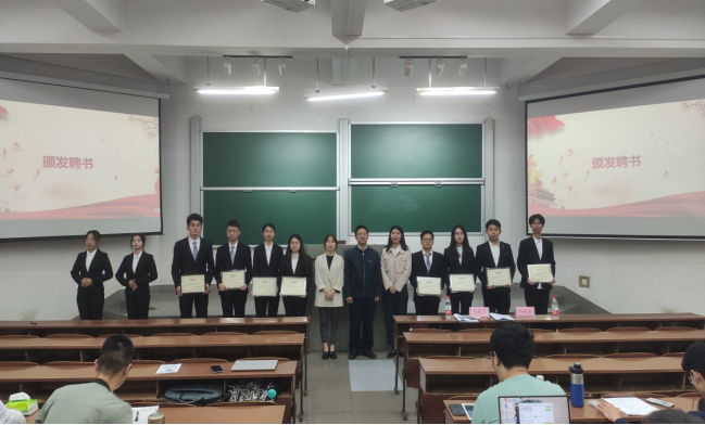 党委副书记陈树芸、团委书记冉晓芬、辅导员骆露蓉向第十届学生会团委干部颁发聘书。