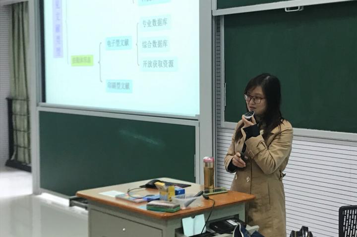 随后何老师为大家演示了如何做到在校外访问电子资源,并且介绍了在本校没有的图书资源情况下如何在湖南师范大学和中南大学的图书馆找到需要的资源,为同学们校外学习提供了有效方式。她还结合自身经历给同学们提出了阅读文献的一些建议,并希望可以帮助同学们解决在图书及文献检索、获取方面的问题。