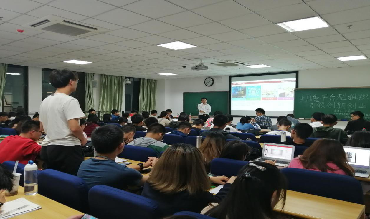 在紧接着的互动环节中,同学们纷纷针对自己不明白的地方进行了积极地提问。例如,其中一位以美团外卖为例,就创业前期客户资源的获得方法提出询问。巫董事长也借助回答这个问题的机会表示,创业要有自己的定点,且要有一颗永远不服输的心,要永远奔跑在路上,知道自己是在为客户服务。还有一位同学向巫奇进董事长请教个体与组织的关系的相关问题,巫奇进董事长表示组织的福利依靠个体产生产品来获得,组织的立足点是产品,而其核心是产品的服务,我们应依靠产品优先的原则,围绕产品来使一个组织发展壮大。其次,对于个体来说,我们的目标不必制定的太高,只要我们脚踏实地,扎实做事,就能找到自己的定位,就能在企业中发挥自己的能力,这是非常重要的一个点。