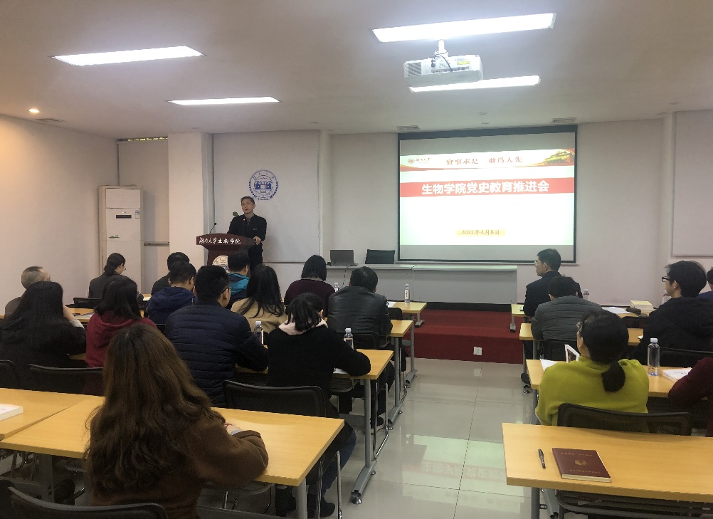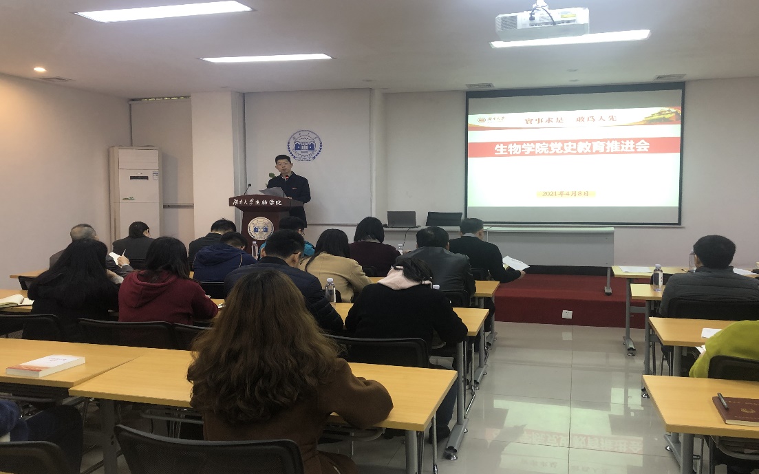 宋杰强调,开展党史学习教育意义重大,要务求实效、提高政治站位、高标准、高质量地完成。要紧紧围绕“学党史、悟思想、办实事、开新局”的总体要求,特别是要突出特色亮点,将党史学习教育融入学科建设、人才培养等中,增强学习教育的针对性、实效性。同时传达了学校党史学习教育领导小组的相关精神。