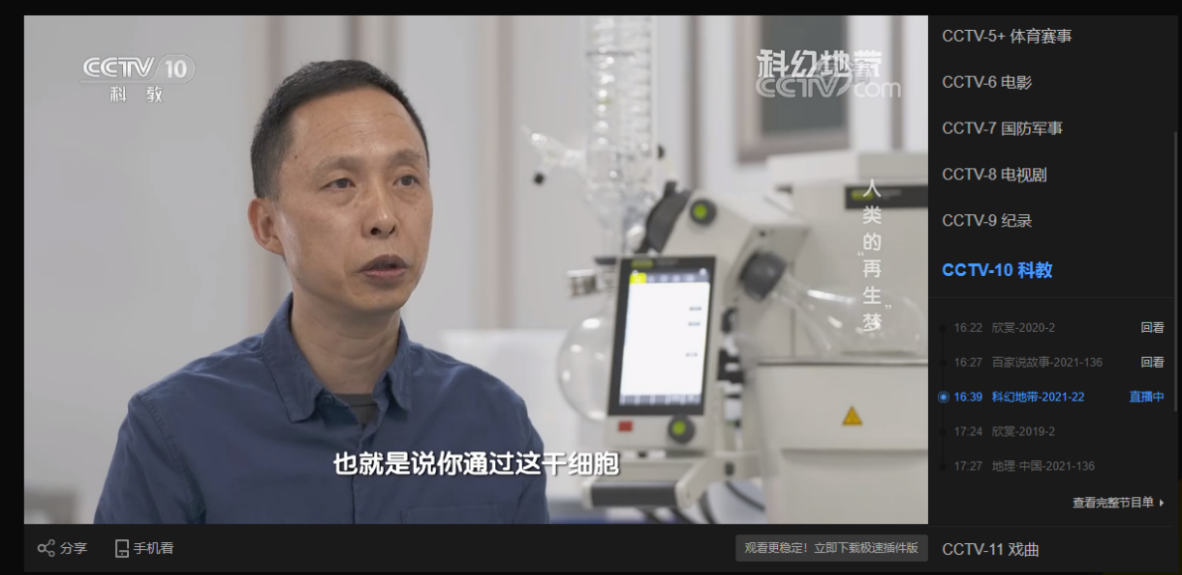 2021年5月16日CCTV10科教频道以《科幻地带:人类的“再生”梦》为题报道了 黄色漫画