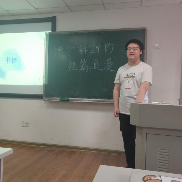介绍完博尔赫斯的人物生平与代表作品后,李天佑同学先是向大家提出问题,同学们以短篇作品与长篇作品的区别为主题进行了交流。接着,他向同学们阐述了博尔赫斯只写短篇文学作品的原因。最后,李天佑同学以《博尔赫斯口述》中的五个关键词为主题介绍了博尔赫斯的短篇小说,分析了他的写作特点。本次图书交流会就在同学们的思维碰撞中圆满结束。