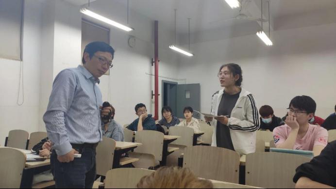 的同学针对自己感兴趣的方面提出了一个问题,高教授表扬该问题十分专业并仔细结合当前自己的研究给出了解答。化学与化工学院和材料科学与工程学院的同学也积极参与互动,高教授就同学们的疑问一一进行解答。