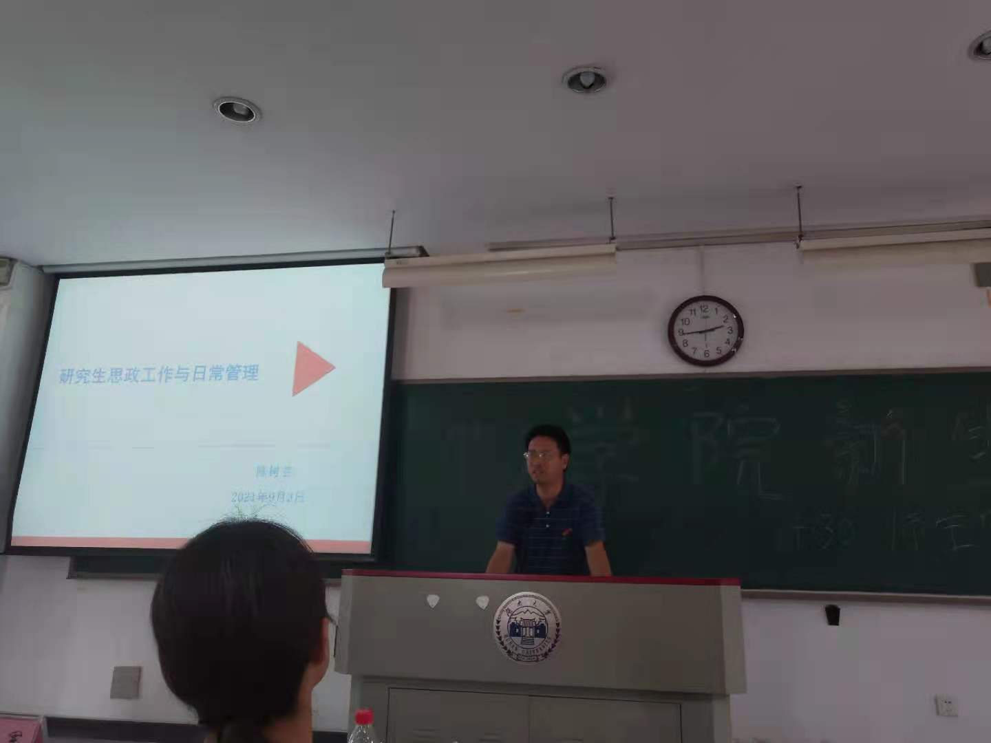 陈树芸介绍了研究生的思政工作,强调研究生“导师负责制”的价值和意义,并希望大家与导师、老师沟通交流,在不断的学习中查缺补漏、提升能力。