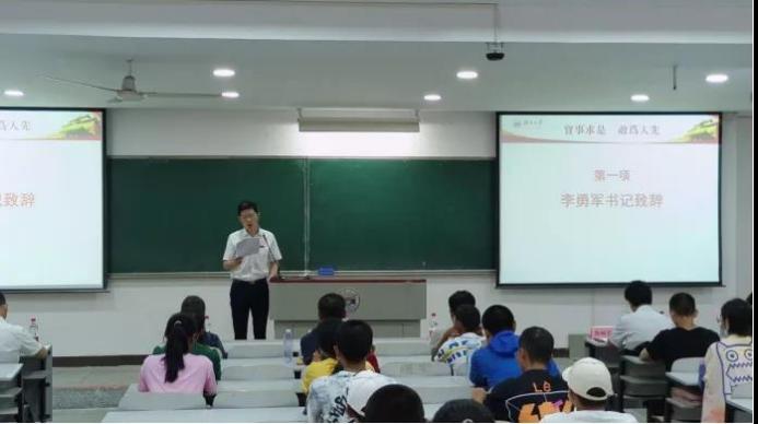 会议第一项,由李勇军书记向同学们介绍学院机构、学院的师资力量、学院的科学研究、学科的方向特色以及本科生的培养特色。李书记对同学们寄予厚望,期待同学们在生命科学这片领域大放异彩。最后,李书记希望同学们能明确肩膀上的重担,给自己定好目标,提高自我管理的能力,做一个优秀的湖大人。