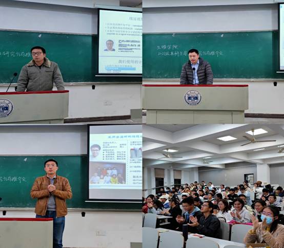 接下来,卓睿导师、徐翔晖导师、岳磊导师、郭新红导师依次上台分享了自己的求学经历及工作经验,大致地介绍了部分受导同学情况,导师们还细致地介绍了自己的研究方向以及目前在该领域取得的一些成就。紧接着上台的依次是张春辉导师、郑何平导师、赵大鹏导师,他们发表了对自己所在研究领域的专业看法,并且分享了一些就业方面的经验。其中张春辉老师简述了自己在耶鲁大学就读的部分经历,郑何平老师告诉大家实验室的工作很繁忙,但是也充满乐趣,能学到很多东西。最后,导师们都热烈欢迎同学们加入自己的实验室。