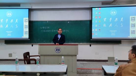 综合楼109召开。副院长涂海军、本科实验中心主任兼学生创新创业中心主任郭新红、药学系主任徐翔晖、教授郑何平、教授岳磊、副教授赵大鹏、副教授卓睿、助理教授张春辉及2021级全体本科生参加此次会议。