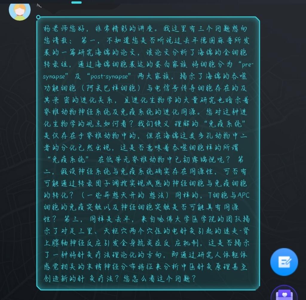 通过这三方面内容的详细介绍,杨竞教授深入讲解了神经-免疫调控的前沿领域。最后,杨竞教授耐心的为同学们解答疑问。本次讲座使同学们都受益匪浅。期待下一次的讲座。