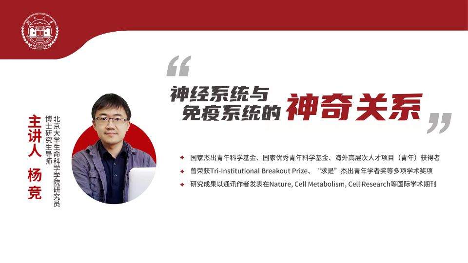 杨竞教授将讲座分为了三部分。第一部分介绍了器官组织如肺、肝脏、骨骼和肠道等全组织的三维荧光免疫染色与成像技术。三维成像技术的开发,是当今神经-免疫互作与调控的重要进展,通过整合跨学科手段,开拓生理或病理条件下神经-免疫调控的全新视角,为治疗各类相关疾病提供了切入点,为深入理解人类疾病开拓全新视角。第二部分讲述了以三维荧光成像技术和跨学科手段研究肺部免疫的神经调控机制。从新冠肺炎引入了这部分内容,杨教授课题组通过三维成像观察,发现了肺部的交感神经分布只存在于气管中,并非气泡中。又通过跨学科的各种手段发现了肺部交感神经的缺失会导致急性肺损伤的加剧。第三部分则介绍了在代谢疾病中的重要代谢器官肝脏交感神经垫的免疫调控机制。通过三维成像观察,发现了无论小鼠还是人类的肝脏神经分布均为顺着血管分布的交感神经,而不存在副交感神经。又通过深入研究发现高脂饮食导致损伤的肝脏交感神经是可以再生。这项研究为肝脏代谢疾病的治疗提供了新的思路。