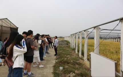 首先,参观水稻育种基地,看到了亩产高达1100公斤的优质高产杂交水稻,以及最新研发和创制的耐高温、耐干旱、耐盐碱、抗飞虱、低镉积累、氮高效利用等水稻新品种。同时,参观了水稻核心种质资源繁育基地和现代农业设施,让同学们了解了水稻品种的培育流程。我们还参观了隆平高科的展示厅和中心实验室,了解了隆平高科的发展历程及远景规划,近距离接触了现代分子育种的关键设备,熟悉其操作流程,尤其对分子标记辅助选择(MAS)技术在作物育种的广泛应用印象深刻。