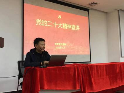 通过此次宣讲活动,支部党员更加明确了把思想和行动统一到党的二十大精神上来的重要意义,也对二十大精神有了更深刻的理解。我们要认真学习领会党的二十大精神,紧密团结在以习近平同志为核心的党中央周围,高举中国特色社会主义伟大旗帜,全面贯彻习近平新时代中国特色社会主义思想,牢记空谈误国、实干兴邦,坚定信心、同心同德,埋头苦干、奋勇前进,为全面建设社会主义现代化国家、全面推进中华民族伟大复兴而团结奋斗!