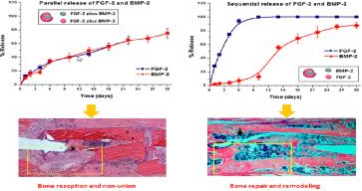 图2FGF-2与BMP-2的同步作用(左)和先后作用(右)对骨折修复的影响。
