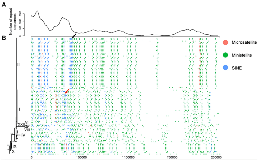 ASFV基因组中的重复序列图谱