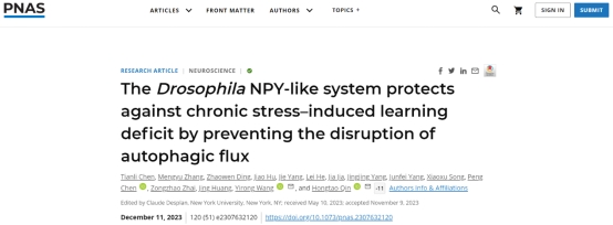 2023年12月11日,综合性国际学术期刊PNAS在线发表了以TheDrosophilaNPY-like system protects against chronic stress–induced learning deficit by preventing the disruption of autophagic flux为题的研究型文章。本论文是多个单位共同合作的成果,参与单位包括 黄色漫画