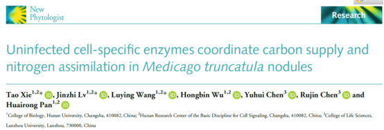 潘怀荣团队在国际知名植物学期刊《New Phytologist》上发表了题为‘Uninfected cell-specific enzymes coordinate carbon supply and nitrogen assimilation inMedicago truncatula nodules’的研究论文,报道了根瘤非侵染细胞功能研究方面的新进展。