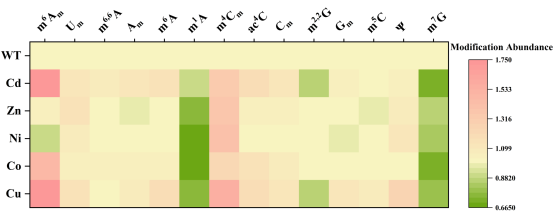 氧化损伤影响RNA修饰的变化,因此通过高灵敏度HILIC-MS/MS进一步揭示,多个甲基化与乙酰化核苷在重金属胁迫下发生显著变化,表明植物RNA修饰在环境胁迫应答中可能发挥重要作用,为植物RNA修饰在参与环境胁迫应答方面的研究提供了新的方向。