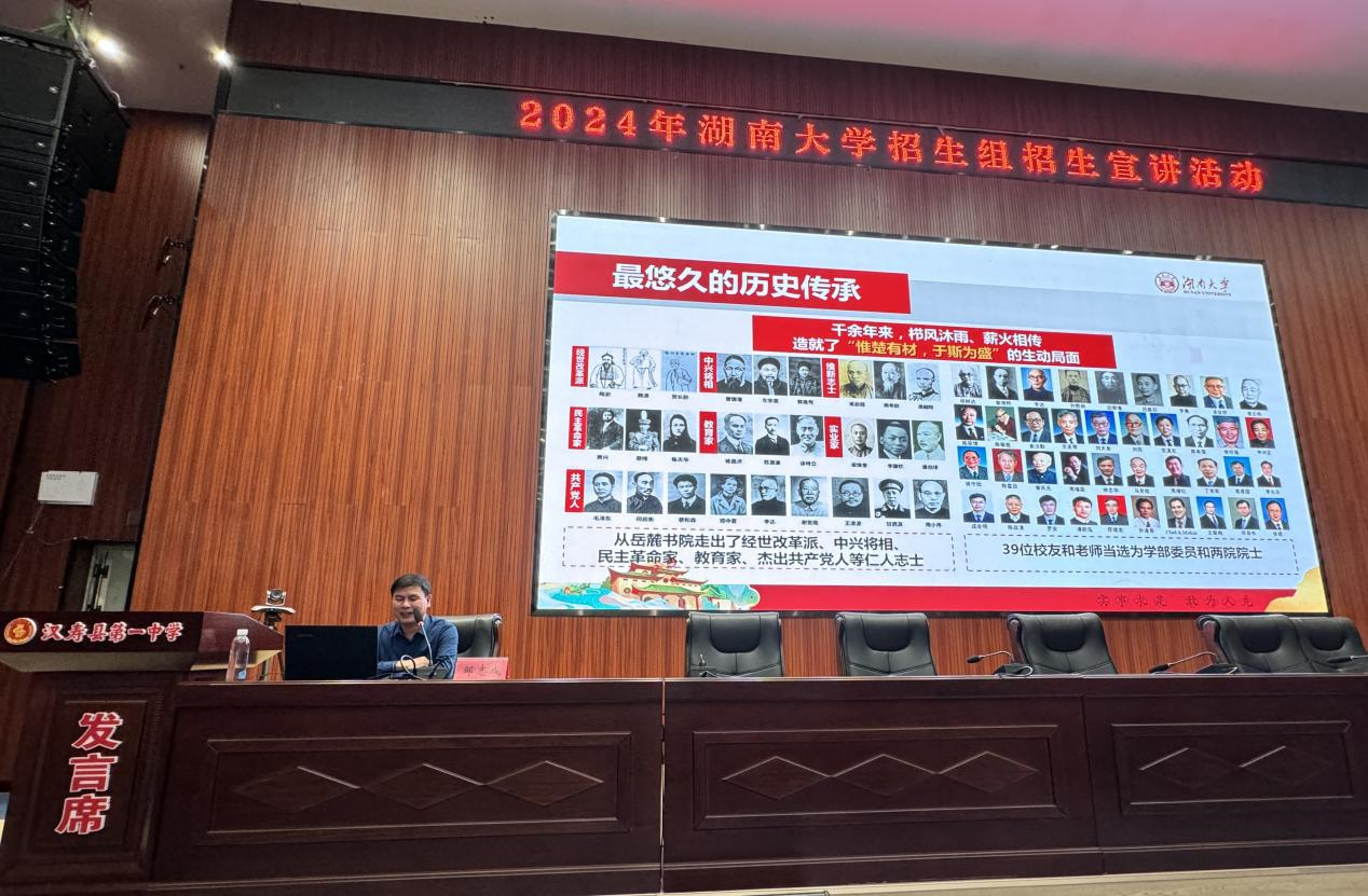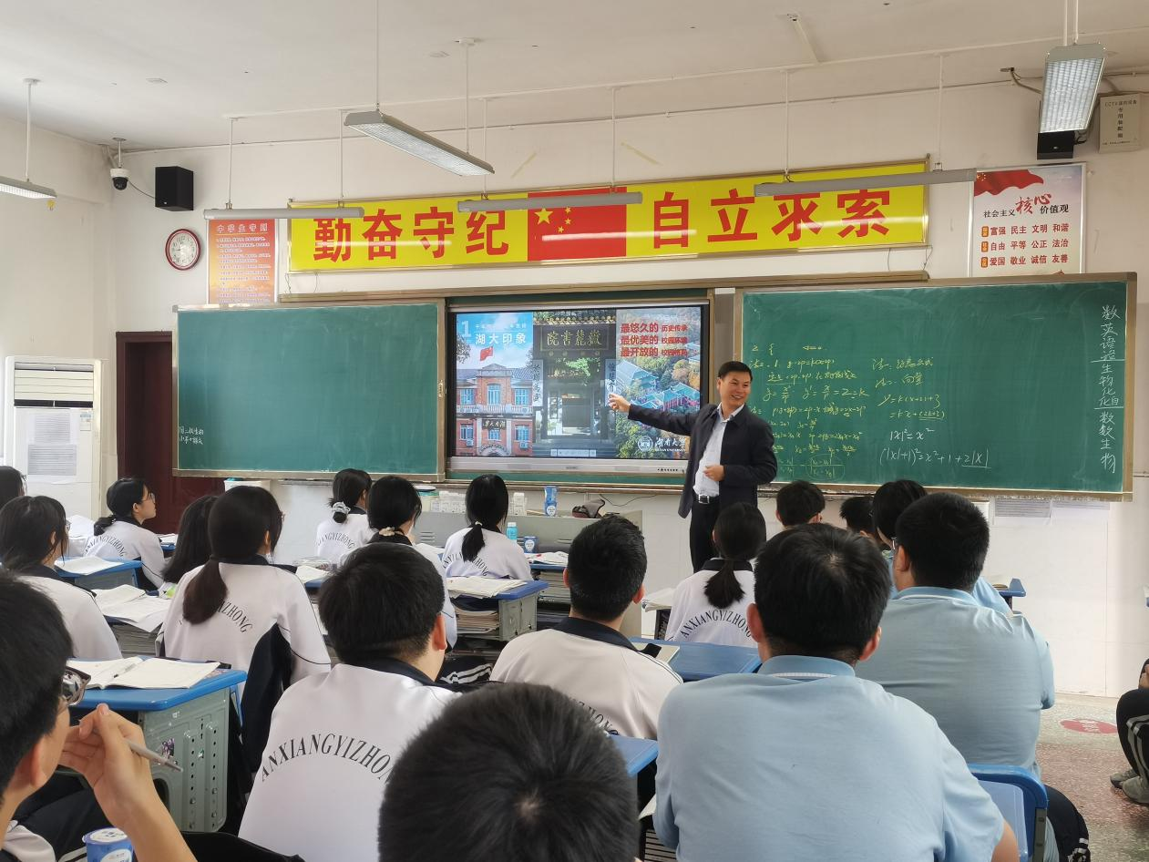 副教授黄明敏、辅导员于淼漪一行到常德汉寿县第一中学、安乡县第一中学进行招生宣讲活动,为两所中学学生开展“生物学与我们的生活”主题讲座,活动覆盖千余名学生。
