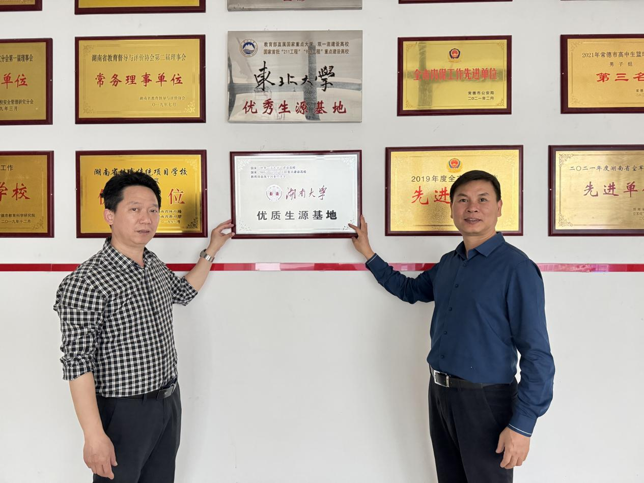 邹志成向汉寿一中授予“优质生源基地”牌匾