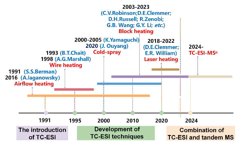 质谱(MS)技术已成为研究非共价相互作用的关键工具,在此基础上,温控电喷雾质谱(TC-ESI)为相互作用的研究提供了更为精细的技术手段。然而,当前TC-ESI的发展主要集中于温度控制方法的探索上,且大多侧重于与一级质谱技术或离子淌度技术的结合应用。然而,TC-ESI与广泛应用的串联质谱(MSn)技术尚未有效结合,这在很大程度上限制了其在大分子和小分子相互作用研究中的深度和广度。